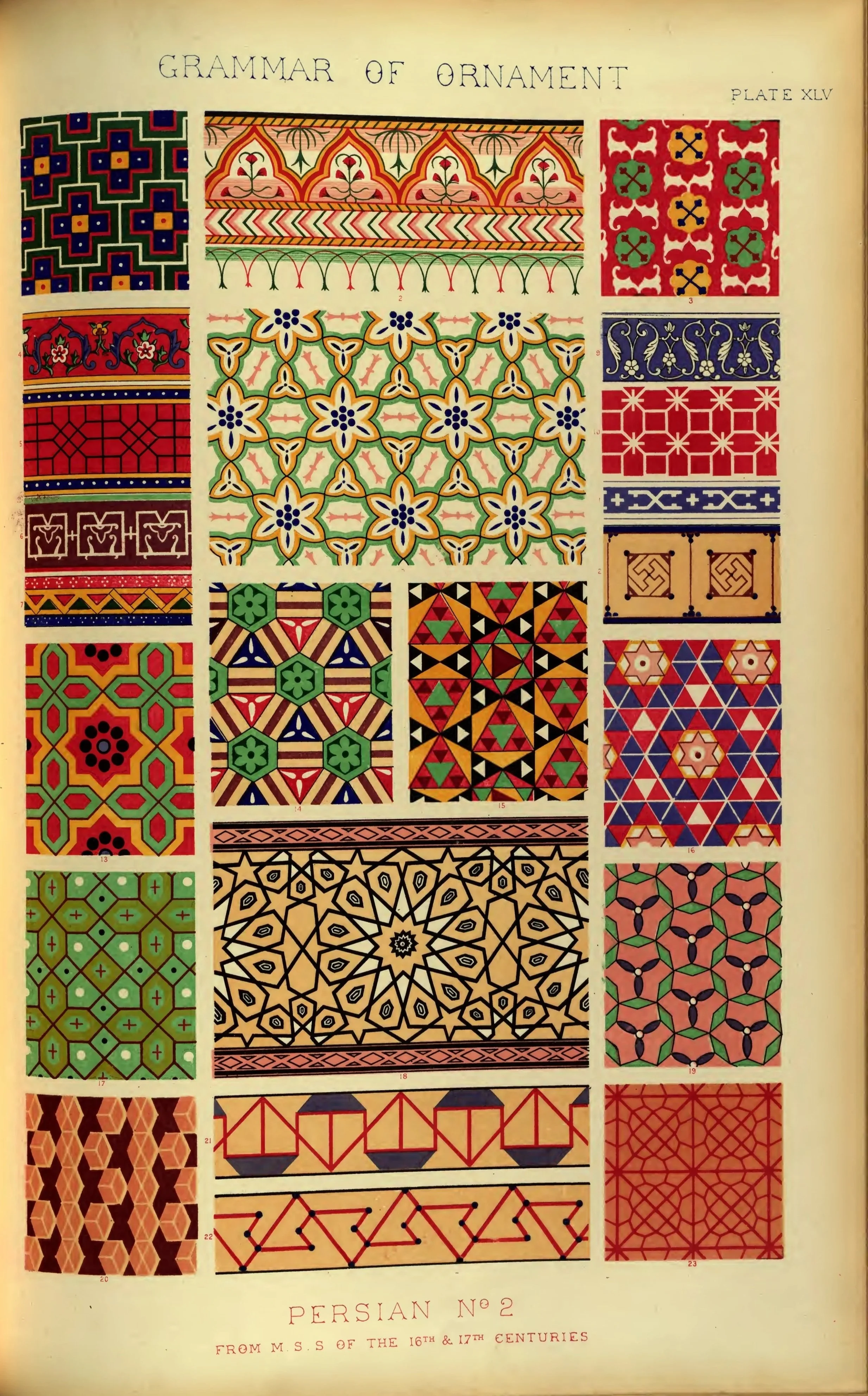 Plate XLV.Persian Design of the 16th and 17th centuries. The Grammar of Ornament Owen Jones. 1856. Public Domain via Smithsonian Libraries, the Cooper Hewitt.