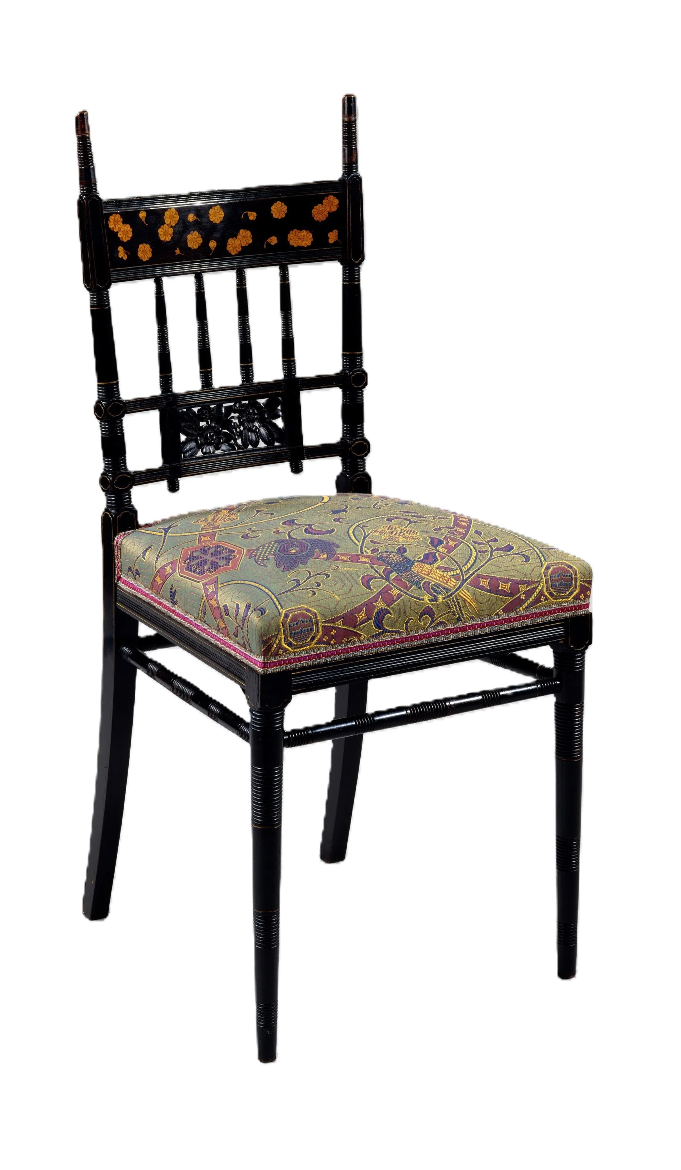 Chair. Herter Brothers. c. 1878. Ebonized cherry, marquetry of lighter woods, gilding.Public Domain. Metropolitan Museum of Art. Object Number: 1992.80