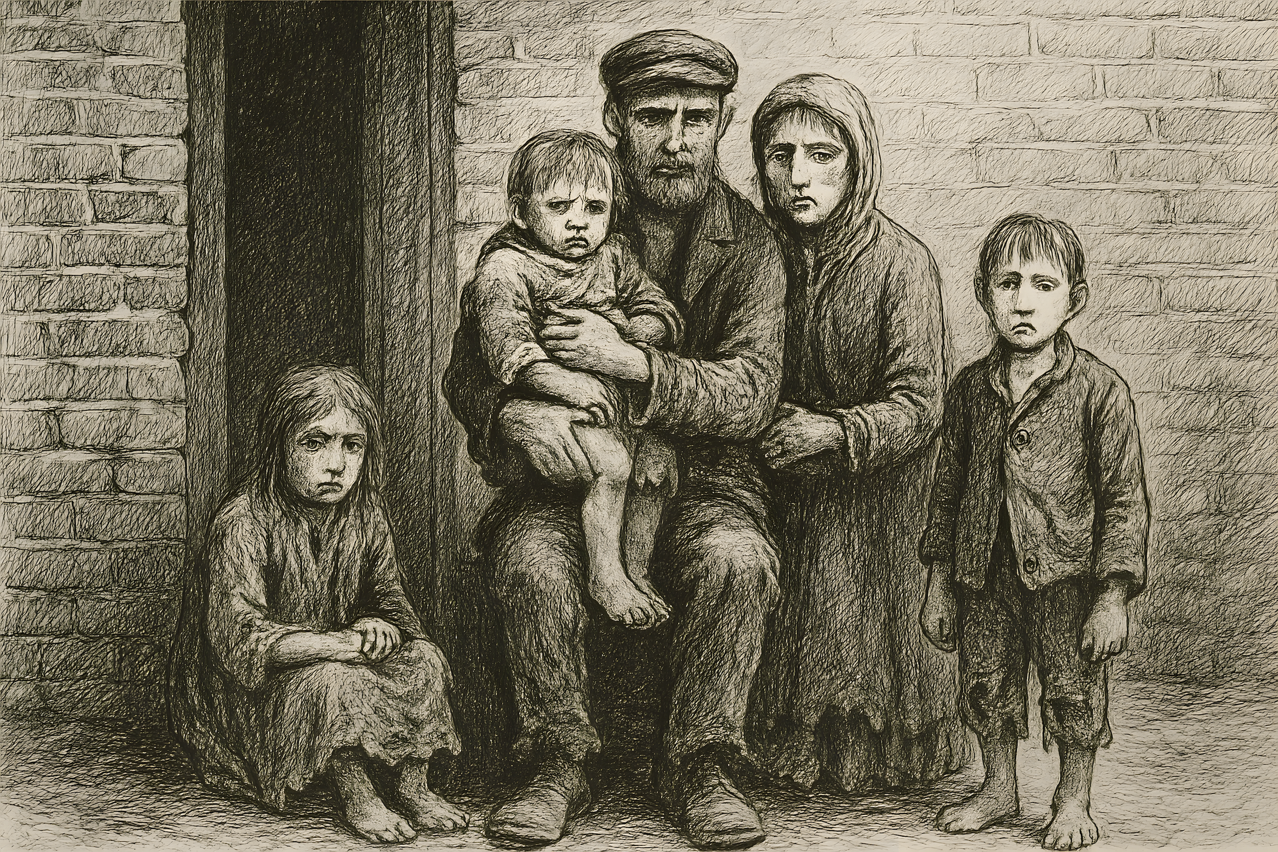 AI-generated image, based on period photos. @ Teresa Ryan 2025 For others, it created unprecedented poverty.