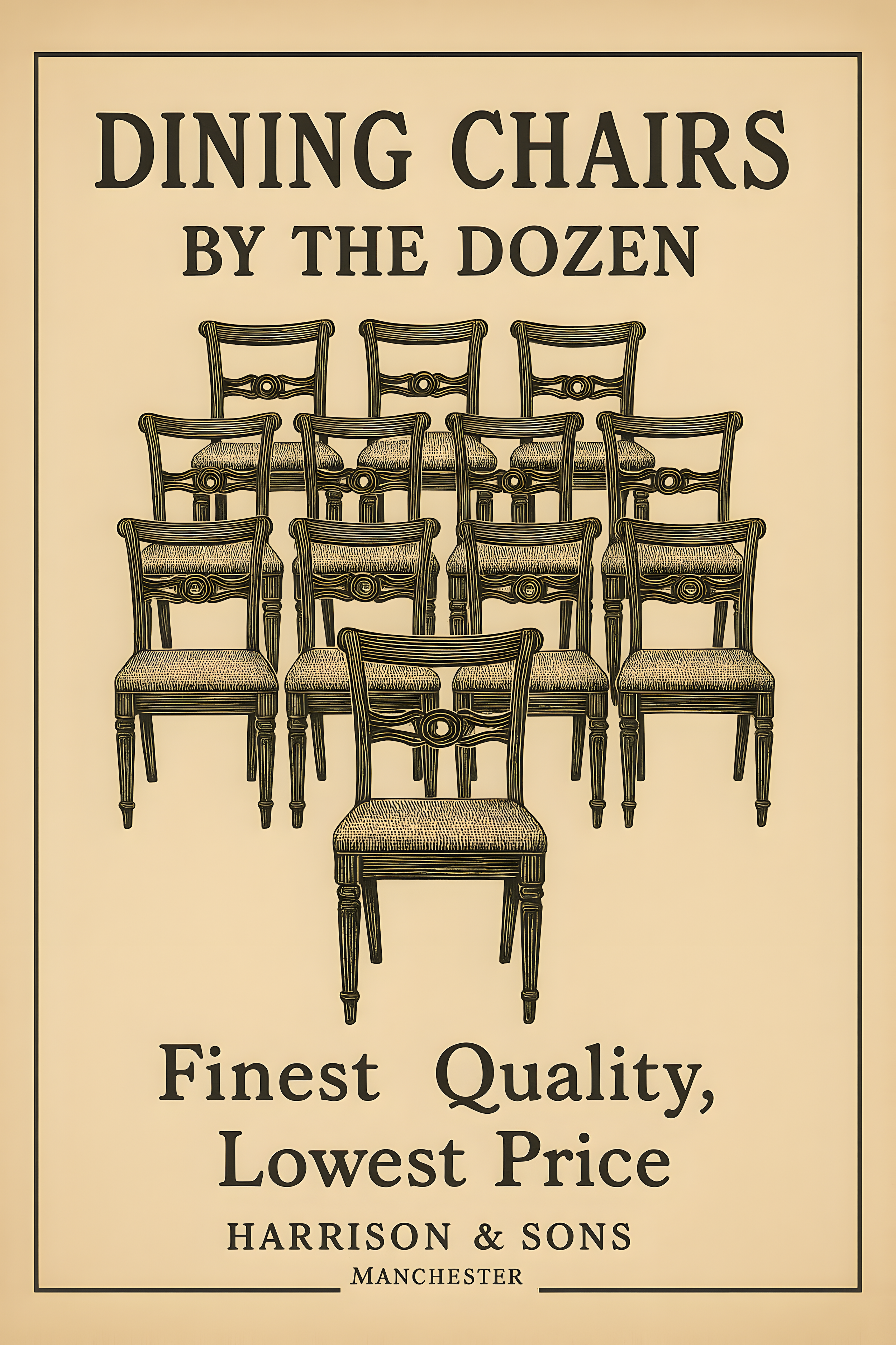 What a typical advertisement for industrially produced furniture in nineteenth-century England would look like. Inspired by actual ads. AI-generated. @Teresa Ryan, 2025