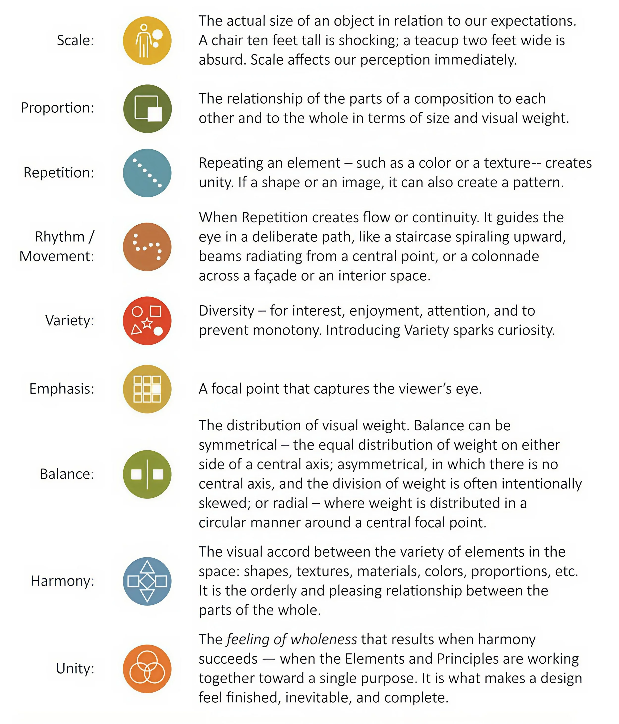 Harmony is what we see in the relationships among parts; unity is what we feel when those parts cohere into one voice. Together they form design’s highest expression—the movement from pleasing arrangement to wholeness of intent.